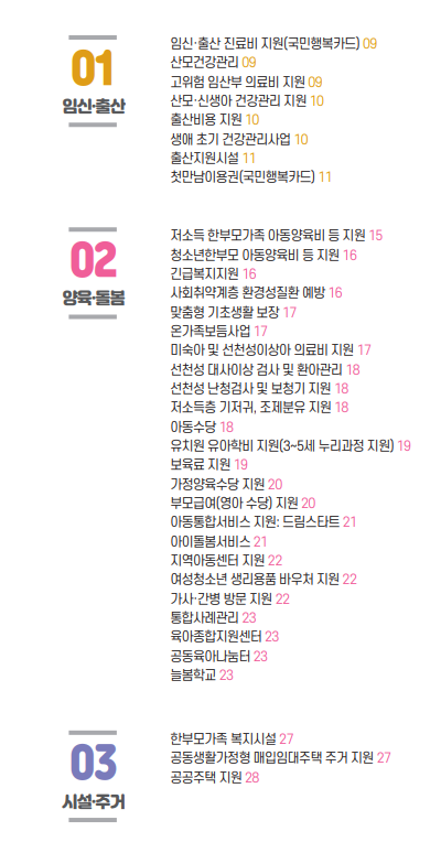 | 가구 유형 | 한부모 가족, 조손 가족, 청소년 한부모 가족 등으로 구분 |